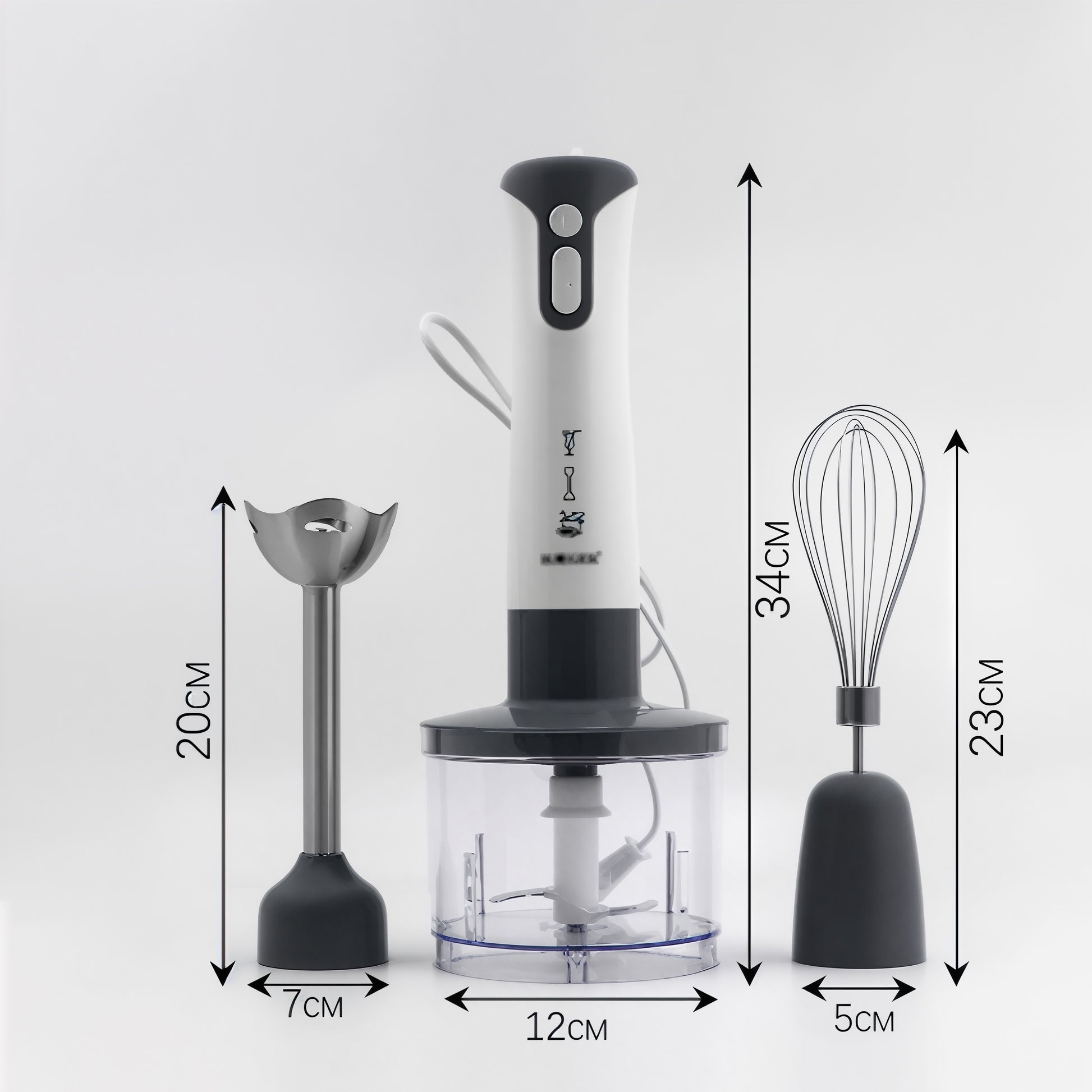 - The immersion blender includes a cup, a chopper and a blender. The chopper and cup have a larger capacity than most other products, allowing you to cook more food together, which is quick and convenient.
